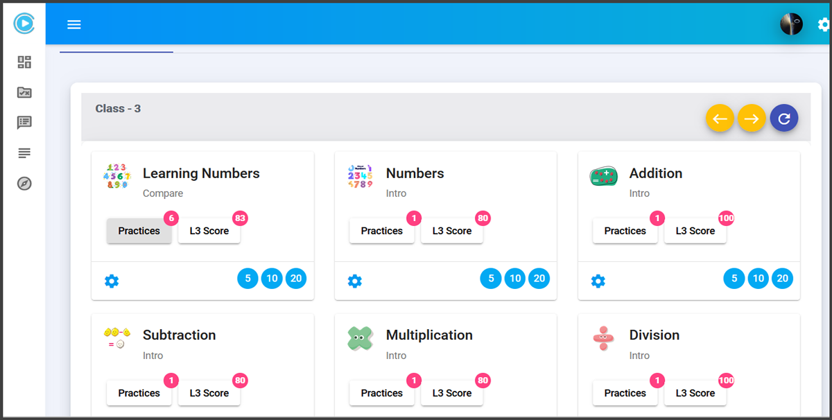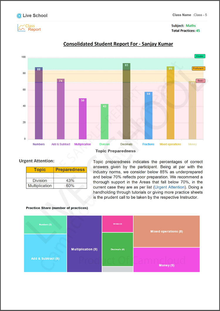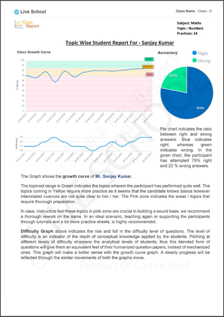 Self comparing & improvement is the focus of Live School LMS. With unlimited sessions, students can learn the concept through practice. The learning slop in Live School is auto-adjusted to the student level.